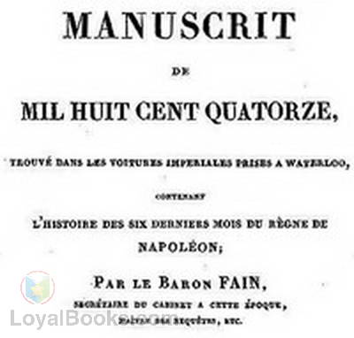 Overall, Manuscrit de 1814 is a must-read for anyone interested in Napoleon, the Napoleonic Wars, or French history in general. Fain's expertly crafted account of this pivotal moment in history is both informative and engaging, making it a worthy addition to any history lover's bookshelf. IMPRIMERIE DE LACHEVARDIÈRE FILS, SUCCESSEUR DE CELLOT, rue du Colombier, n. 30. MÉMOIRES DES CONTEMPORAINS, POUR SERVIR A L'HISTOIRE DE FRANCE, ET PRINCIPALEMENT A CELLE DE LA RÉPUBLIQUE ET DE L'EMPIRE. Deuxième livraison. SECONDE ÉDITION. PARIS, BOSSANGE FRÈRES, LIBRAIRES, RUE DE SEINE, Nº 12. 1824. MANUSCRIT DE MIL HUIT CENT QUATORZE, TROUVÉ DANS LES VOITURES IMPÉRIALES PRISES A WATERLOO, CONTENANT L'Histoire des six derniers mois du règne de NAPOLÉON Par le Baron FAIN, SECRÉTAIRE DU CABINET A CETTE ÉPOQUE, MAÎTRE DES REQUÊTES, ETC. AVERTISSEMENT DES ÉDITEURS. Cet ouvrage, terminé au commencement de 1815, avait été perdu avec beaucoup d'autres papiers dans les voitures impériales prises à Waterloo; et c'est sous le titre anonyme de Manuscrit de mil huit cent quatorze, trouvé à Waterloo , qu'il nous a été présenté. Occupés d'en donner une édition, nous avons mis tous nos soins à chercher quel en était l'auteur, et voici ce que nous avons appris d'une manière certaine. Napoléon, en quittant Fontainebleau pour se rendre à l'île d'Elbe, avait chargé le baron Fain, son secrétaire du cabinet, de préparer sur les dernières années un relevé de faits et de dates qui pût lui servir de canevas, selon son usage, lorsqu'il voudrait dicter cette partie de son histoire... Continue reading book >>